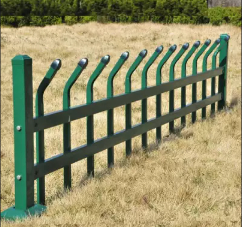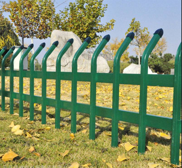 花坛栅栏,立柱通过50*50*0.9mm钢管浸塑处理,附件有防雨帽、连接卡、防盗螺栓,连接方式是卡接。
